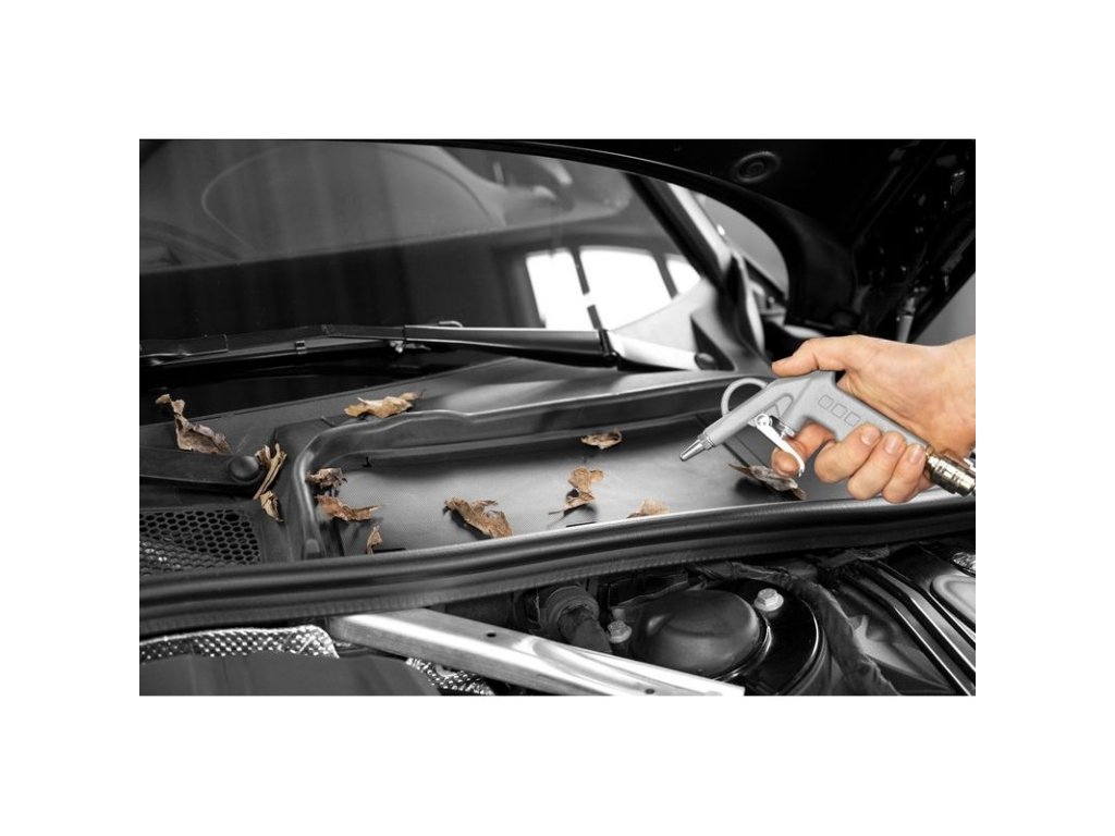 Pneumatická vyfukovacia pištoľ z tlakovo liateho hliníka, na čistenie, vyfukovanie dutín a podobne. Prípojná vsuvka.