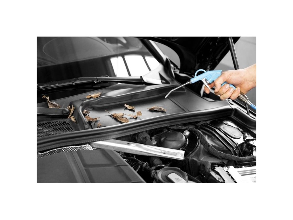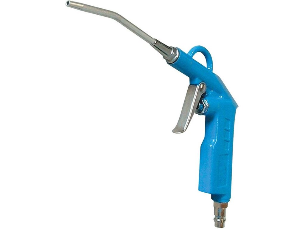Stredne dlhá pneumatická vyfukovacia pištoľ z tlakovo liateho hliníka, na čistenie, vyfukovanie dutín a podobne. Prípojná vsuvka.