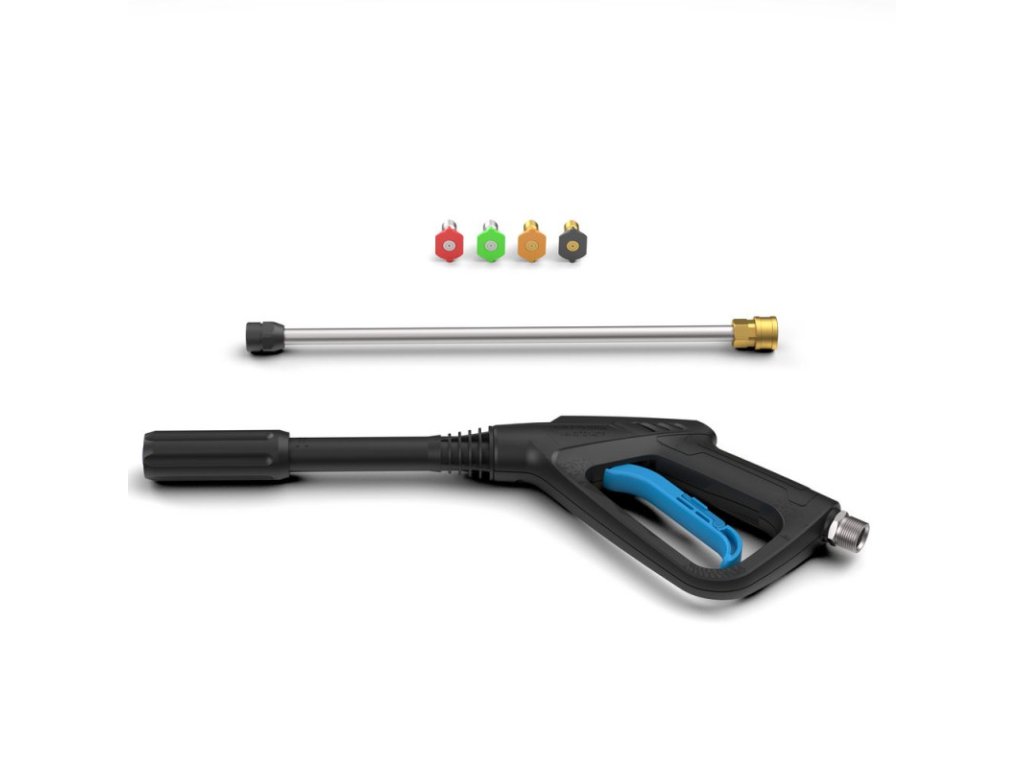 Vysokotlakový čistič so systémom automatického zastavenia pre jednoduchú obsluhu. Výkonné mosadzné čerpadlo. Indukčný motor s dlhou životnosťou. Praktické držiaky na oboch stranách vysokotlakového čističa pre príslušenstvo, vysokotlakovú hadicu a prípojný kábel. Integrovaná nádoba na čistiaci prostriedok. Veľké transportné kolesá. Bubon na vysokotlakovú hadicu. V balení sa nachádza vysokotlaková hadica 6-metrová na praktickom hadicovom bubne, vysokotlaková pištoľ so 4 tryskami (0° / 15° / 25° a široká), tryska na nečistoty, trojuholníková kefa, rotačná okrúhla kefa, podlahový čistič.