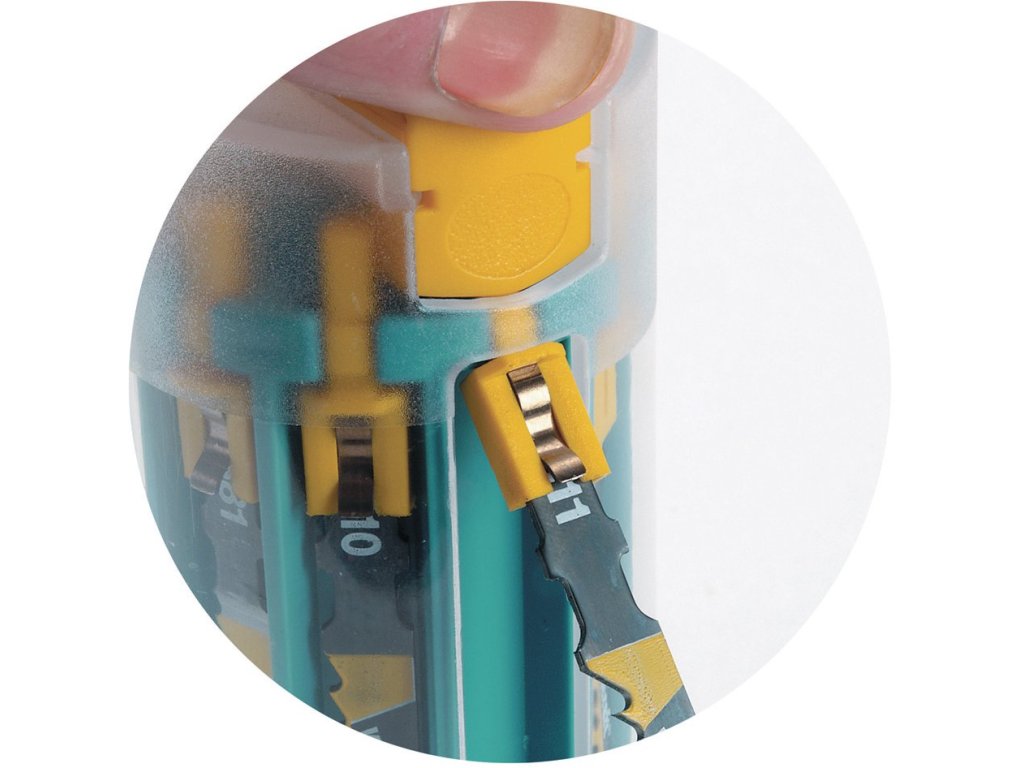 Box s pílovými listami do dierovky. Komfortné vybratie jednotlivých listov stlačením tlačidla, voľný pohľad na listy vďaka priehľadnému vysoko transparentnému plastovému puzdre. Obsah: 10 pílových plátkov v skladovacom boxe Balenie: dvojitý blister na karte stopka - T- stopka materiál: HCS hĺbka rezu: 50 mm 50 mm 20 mm 30 mm 1 - 3 mm akosť rezu: veľmi hrubé rezy rýchle, hrubé rezy čisté zakrivené rezy jemné rezy vhodné pre: tvrdé drevo, preglejky, drevené trámy, plasty mäkké drevo, latovky, drevotrieskové dosky, laminát plechy, neželezné kovyDodatočné parametre