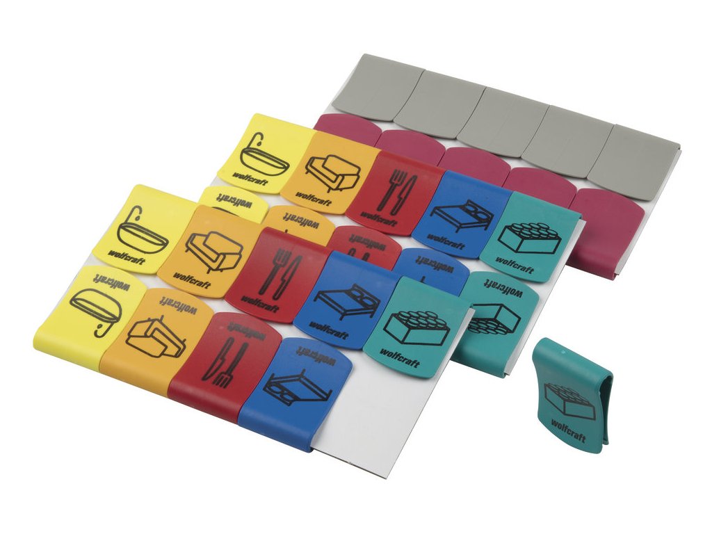 Funkcia 2 v 1: pomôcka pri označovaní a svorka na veko Na rýchle označenie sťahovacích kartónov a ich pohodlné naplnenie a vyprázdnenie. jednoznačné označenie naplnených kartónov farebnými kódmi a piktogramy obytných miestností pohodlné naplnenie kartónu vďaka páčke na zachytenie veka kartóne kartóny zostanú neporušené, vhodné na ďalšie použitie alebo predaj na zadnej strane priestor na vlastný popis prevedenie: neroztrhnuteľné prevedenie z kvalitného, stabilného plastu obsah: 4 x svorky s piktogramom kúpeľne 4 x svorky s piktogramom kuchyne 4 x svorky s piktogramom detskej izby 4 x svorky s piktogramom spálne 4 x svorky s piktogramom obývačky 10 x svorky neutrálne, bez potlače balenie: plastový sáčok na karteDodatočné parametre