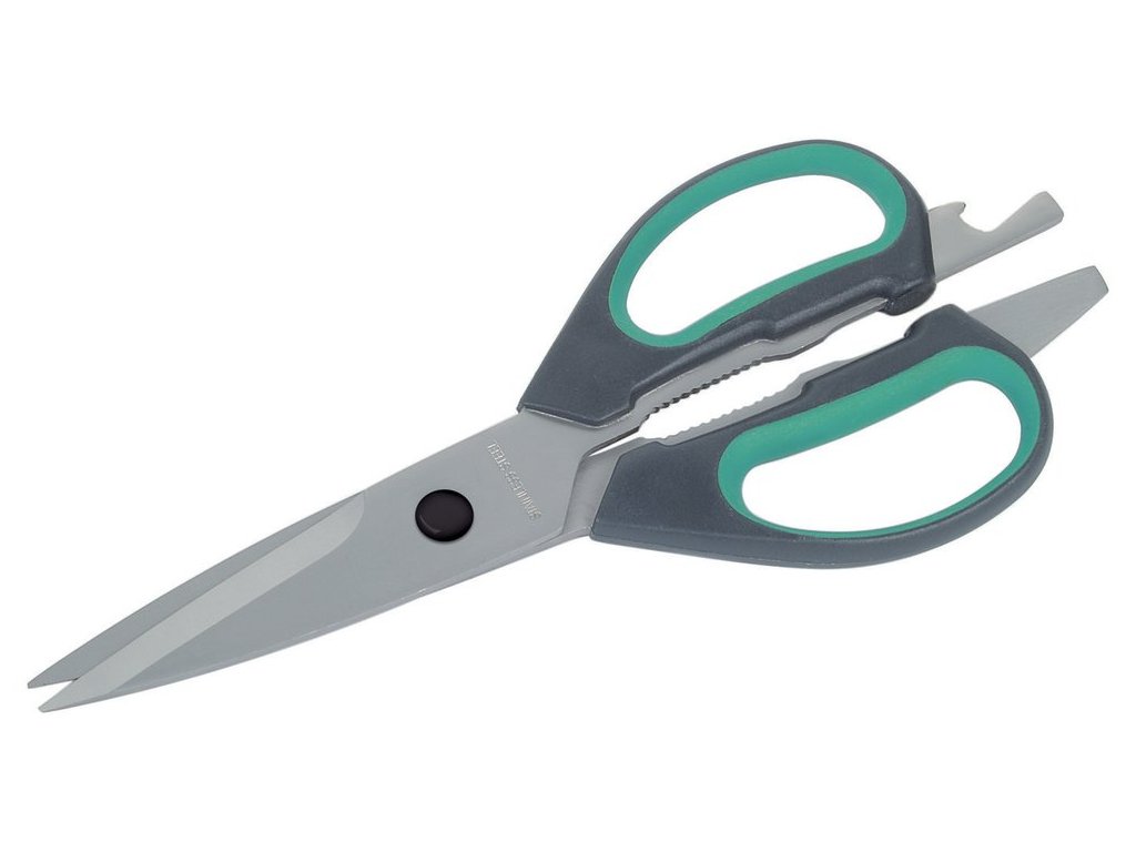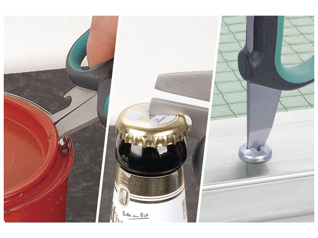 univerzálne nožnice do domácnosti s ergonomickými rukoväťami so špeciálnou geometriou rezania s doplnkovými funkciami ako skrutkovač, otvárač fliaš, plechoviek balenie: blister na karte EAN 4006885416406 ELN4164000Dodatočné parametre