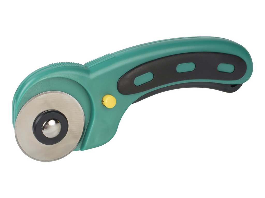 nůž s kolečkem rovné a zakřivené řezy k řezání látek a papíru s pákou a dodatečným tlačítkem pro bezpečnou aretaci materiál: plastová balení: blistr na kartě EAN: 4006885415201Dodatočné parametre