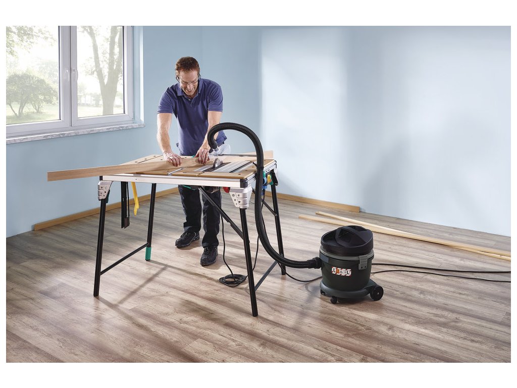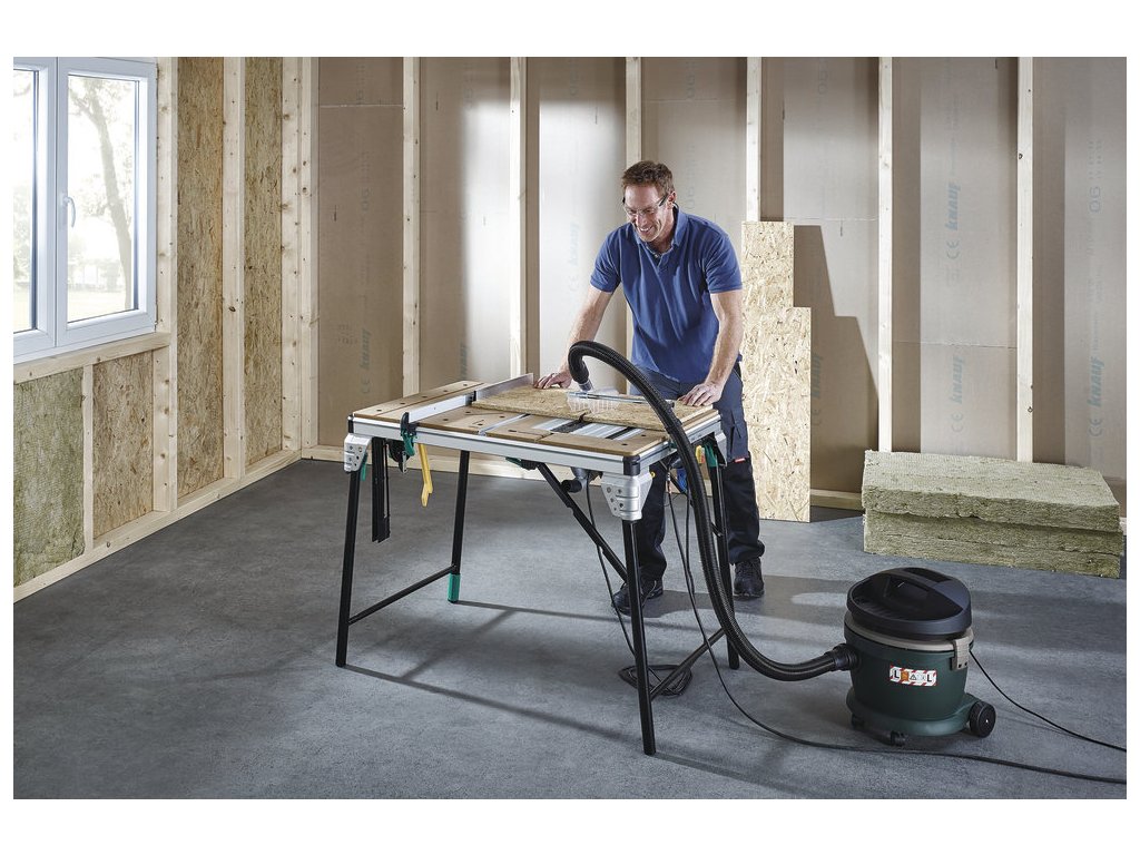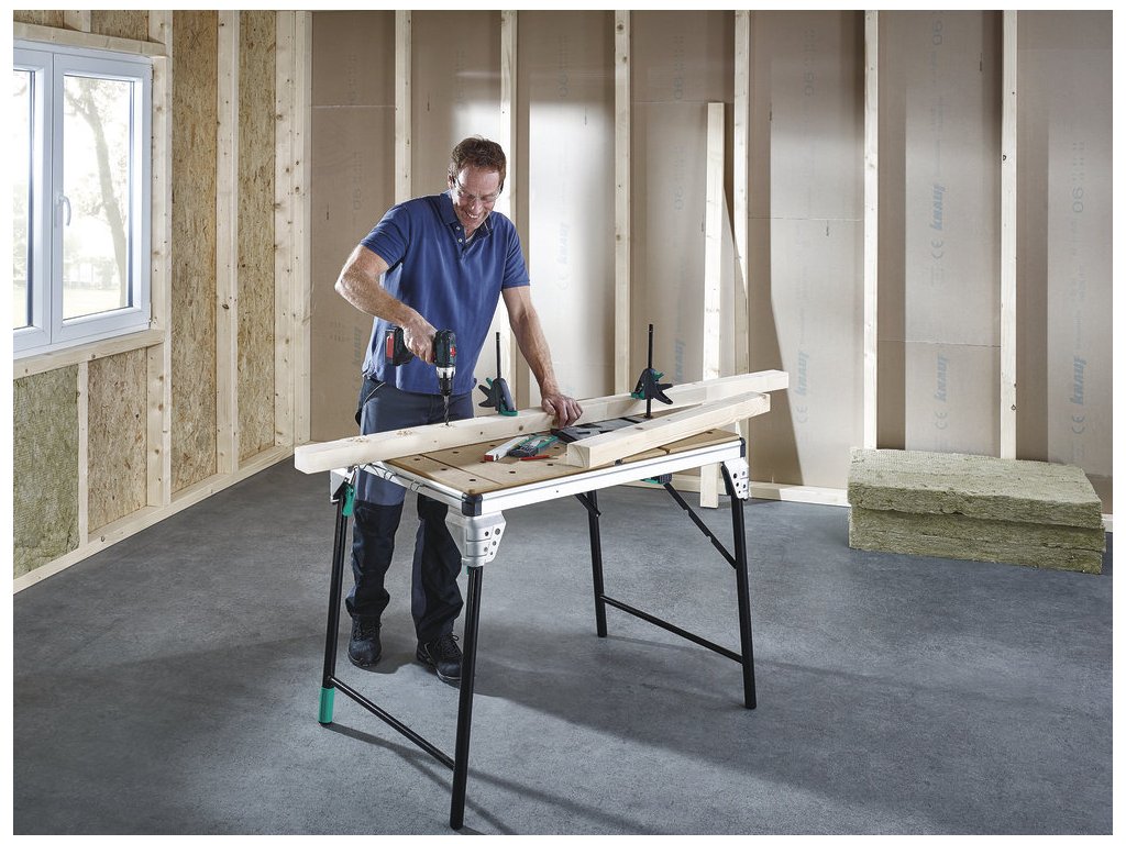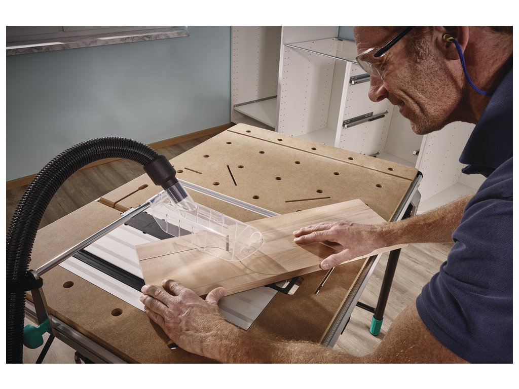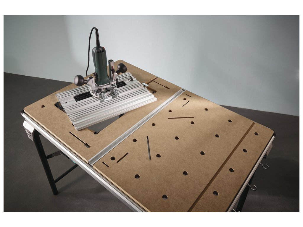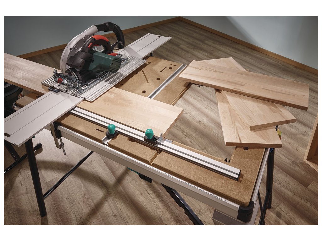 Wolfcraft Pracovný stôl MASTER cut 2500 6902000 6 v 1 - presný rezací stôl a pracovné stanice jeden rezací stôl - šesť možností použitia Je jedno či malá dosky alebo veľké dosky - s MASTER cut 2500 režete všechzny dielenské kusy presne. Združuje stolný kotúčovú pílu, vedenú ručnú okružnú pílu, frézovacie stôl a stôl pre priamočiaru pílku v jednom prístroji. Vďaka svojej veľkej pracovnej ploche a sklápacím nohám je tiež preto veľkú a mobilné pracovné stanicou. funkcia Stolná kotúčová píla perfektné pre krátenie malých a ľahkých obrobkov, ktoré pomou posunovania po stole presný rovnobežný rez vďaka presnému dorazu kosý rez od 0-65 ° vďaka presnému uhlovému dorazu funkcia Vedená ručná kotúčová píla s wolfcraft vodiacou lištou a fixovacím kliešťami ideálny ku kráteniu veľkých panelov a dosiek vďaka 80 cm hliníkovému dorazu uhlový doraz pre vodiace lišty plynulo nastaviteľný od 0-70 °, s dorazovým jazdcom pre presné opakované rezy hliníková strojné doska umožňuje veľmi rýchle prestavenie od stola pre kotúčovú pílu k vedenému rezanie s vodiacou lištou funkcie Stôl pre priamočiaru pílku ideálny pre krivkové rezy priama viditeľnosť na línii rezanie ľahké vedenie obrobkov ručne funkcie Frézovací stôl príslušenstvo: pozdĺžna frézovacie zarážka (číslo zb. 6901000) robí z MASTER cut 2500 plnohodnotný frézovacie stôl Pozor: frézovacie stôl smie byť používaný len s pozdĺžnou frézovacie zarážkou (číslo zb. 690100)! funkcie Mobilná pracovná stanica veľká pracovná plocha z nárazuvzdorné MDF s upínacími a upevňovacími možnosťami robustné a pevne stojace, stabilný podstavec a výškovo nastaviteľné nohy všade použiteľný a šetrí miesto pri skladovaní jednoduchá preprava vďaka ľahkej hliníkovej konštrukcii odklápacie nohy pre chrbát šetriace práce multifunkčné pre všetky projekty pripadajúce do úvahy: použiteľné ako stolové kotúčová píla, vedená ručná okružná píla, stôl pre dierovka, stôl frézky, pracovný stôl presné: exaktné rezy vďaka kvalitným dorazom a vodiacim lištám mobilné: použiteľný všade a šetrí miesto pri skladovaní robustné a pevne stojace, stabilný podstavec, do 120 kg zaťažiteľný, výškovo nastaviteľné nohy kompatibilný: pre takmer všetky kotúčové píly, horné frézky a priamočiare píly balenie: kartón ELN6902000 EAN 4006885690202 Stavební návod na MASTER CUT 2500Dodatočné parametre