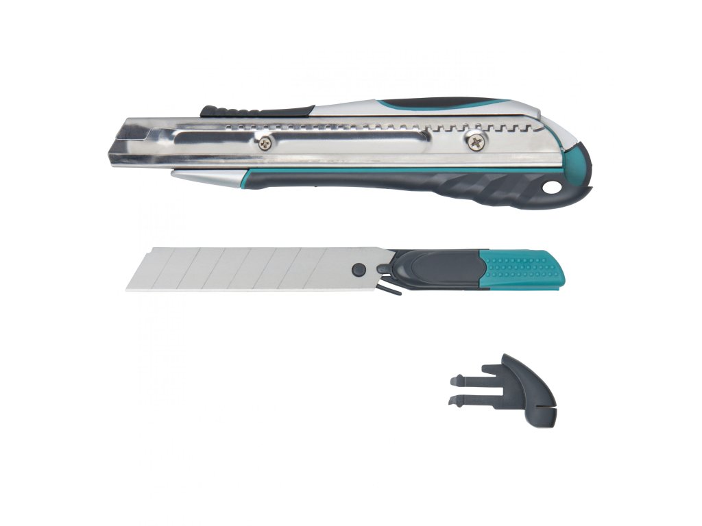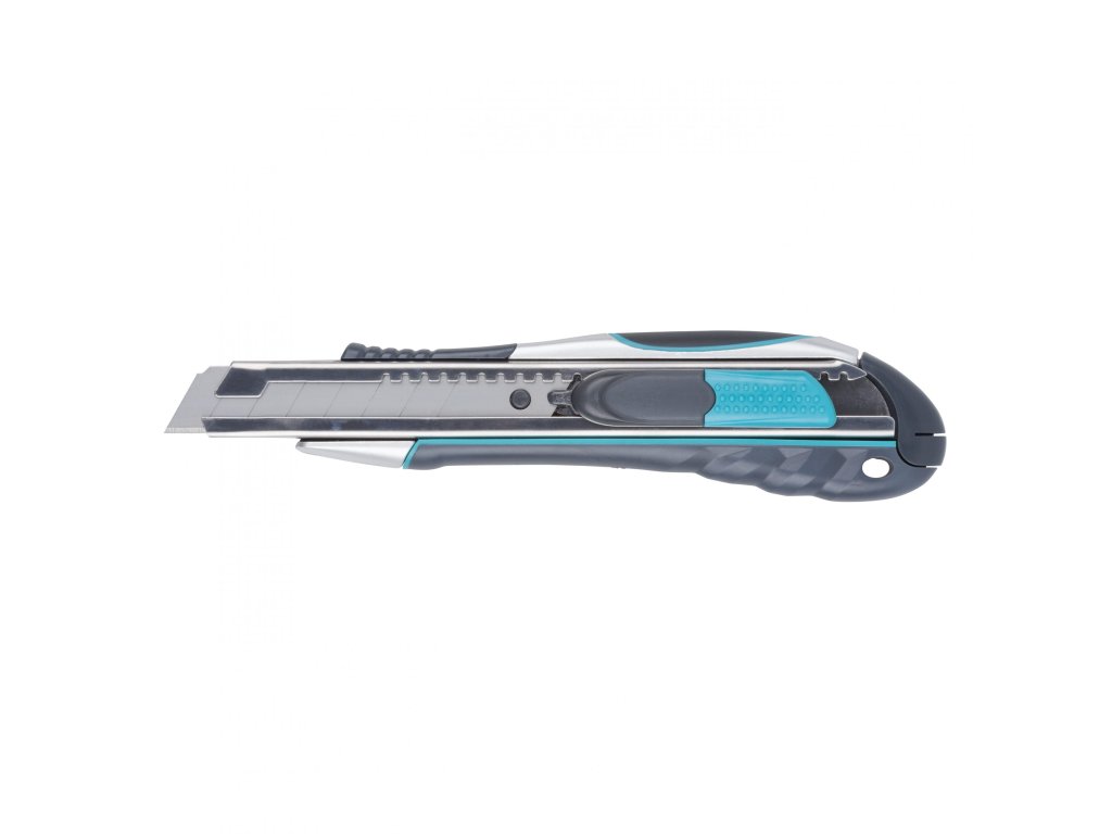 Bezpečné řezání lepenky, kartonu a fólií • 2 možnosti nastavení pro nejrůznější možnosti použití s jediným nástrojem • volitelná funkce automatického zámku pro pevnou čepel • volitelná bezpečnostní funkce umožňuje automatické zasunutí čepele, jakmile je posuvná součást uvolněna • ergonomická měkká zóna pro komfortní manipulaci • robustní a s dlouhou životností díky kovovému tělu a kovovému vedení čepele • opětovně plnitelný a kompatibilní se standardními 18 mm odlamovacími čepelemi • speciální uchycení čepele umožňuje rychlou výměnu čepele bez použití nástrojů • včetně: 1 x odlamovací čepel, s 8 segmenty • balení: blistr na kartě • samostatné příslušenství: 4179000, 4181000, 4182000, 4208000Dodatočné parametre