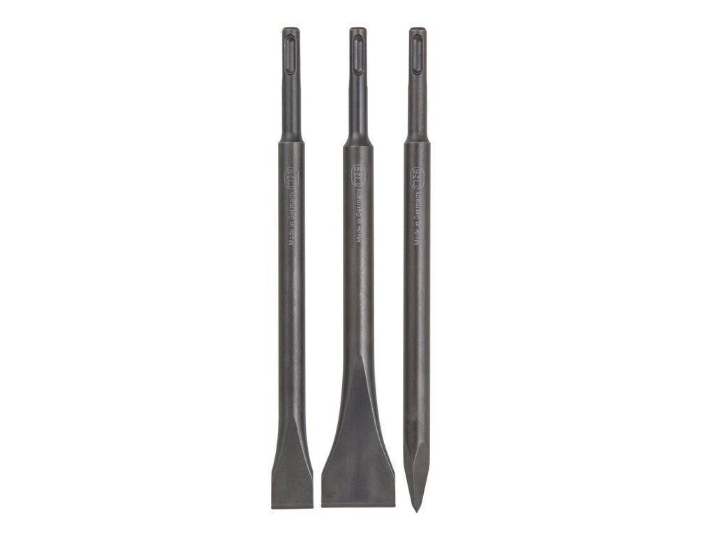Sada dlát obsahuje 1 x špicatý sekáč, 250 mm, 1 x plochý sekáč, 250 mm, 20 mm, 1 x rýčovitý sekáč, 250 mm, 35 mm. Balené v plastovom vrecku na karte. EAN:4006885791404 Technické paramentry: Průměr: Délka: Stopka: Délka spirály:Dodatočné parametre