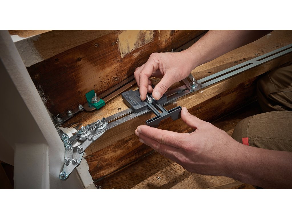 - 15 pozinkovaných kovových koľajníc určených k presnému zachyteniu tvaru schodníc - tvarovateľná časť šablóny pre presné odmeranie zaoblenie základne schodiskové konštrukcie - kĺbové spojenie pre optimálne prispôsobenie šablóny - možnosť vymeranie tiež zvoleného presahu materiálu - systém jednoduchej fixácie šablóny pomocou ergonomických matíc - fixuje tvar schodnice v stabilnej polohe, možnosť jednoduchého prenesenia miery vhodné pre: drevené schodisko pravidelných tvarov, schodnice nepravidelných tvarov, pokládka kobercov a podlahovín na schodnicové stupňa Výstavba alebo renovácie schodisko patrí k tým zložitejším porjektům, s ktorými sa remeselník alebo nadšený kutil stretáva. Vyvinuli sme preto precízne prípravok pre maximálne uľahčenie práce sa schodnicami. So schodiskový šablounou wolfcraft 5210000 môžete ľahko nastaviť jednotlivé rozmery každej schodnice vrátane zložitých tvarov uchytenia u základne. A nezastaví sa ani pred oblinami alebo komplikovanejšími uhly. Skrátka ľahko a presne stačí pomocou motýlkových matíc šablónu prispôsobiť na schodnici a jednoduchú aretáciou potom môžeme požadovaný rozmer preniesť na materiál a to vrátane požadovaného presahu. Aj keď je každá schodnice originál, s našou Sabon je ich výroba hračkou. A využiť ju môžete aj pri pokládke koberca alebo inej podlahovej krytiny. EAN 4006885521001 https://youtu.be/xMJIqLH9cBIDodatočné parametre