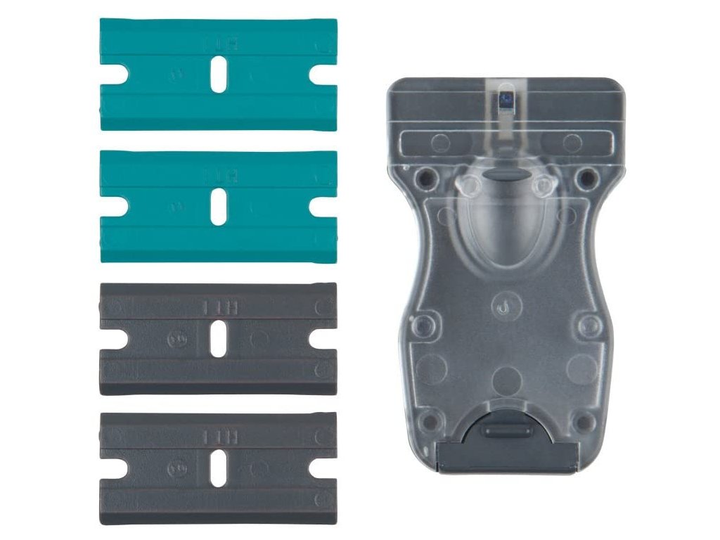 K čištění citlivých povrchů • 4 plastové čepele pro obzvláště citlivé povrchy ve 2 stupních tvrdosti: střední a tvrdé pro čištění odpovídající dané potřebě • plastové tělo se zásobníkem pro praktické skladování náhradních čepelí • speciální uchycení umožňuje výměnu čepelí bez použití nástrojů • provedení: plastové tělo se zásobníkem na náhradní čepele • balení: připevněná na kartě 4006885428706Dodatočné parametre