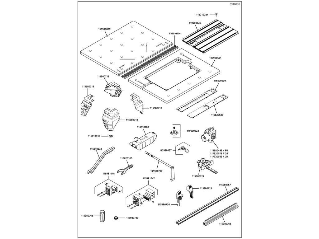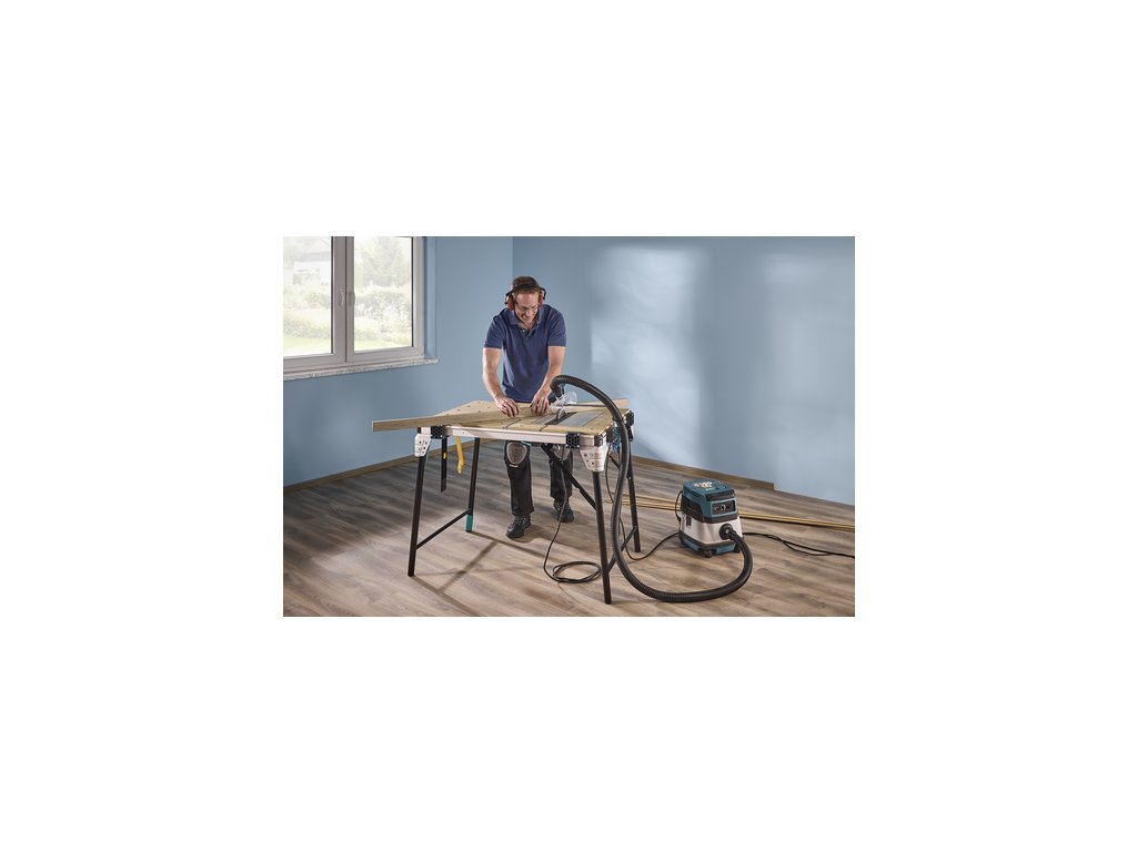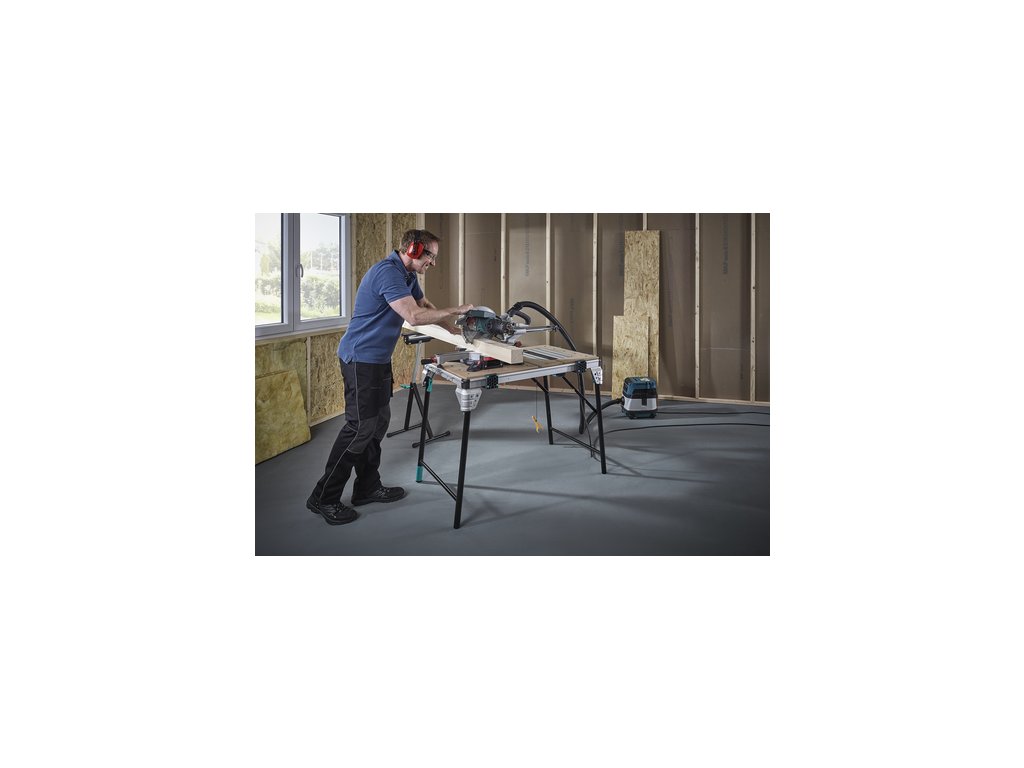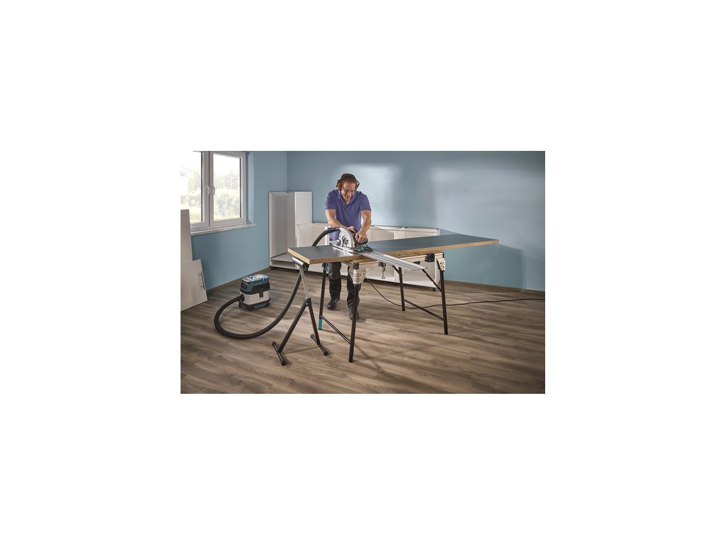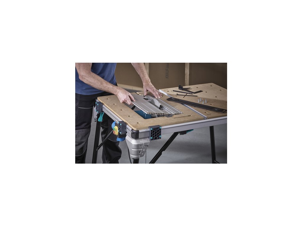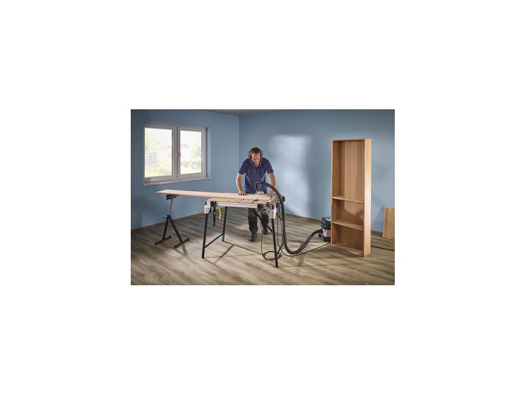 Multifunkčný strojné stôl MASTER cut 2600 spája 6 funkcií v jednom výrobku. Dá sa používať ako stolové kotúčová píla, ako stôl na priamočiaru alebo kapovaciu a pokosovú pílu, ďalej ako pracovné stanice a - s voliteľne dodávaným príslušenstvom - ako frézovacie stôl a stanice pre vedenú ručnú kotúčovú pílu. Vďaka tomu je MASTER cut 2600 ideálny pre všetky remeslá vo vnútornej výstavbe. Vďaka samostatne dodávanému a vyberateľnému rozpěrnému klinu je jedným z mála strojných stolov, ktoré môžete používať aj s ručnými kotúčovými pílami bez rozperných klinov. Nástrojová doska je vybavená bezpečnostným zaisťovacím mechanizmom, ktorý spoľahlivo upevní nástroj k doske. Navyše je výškovo nastaviteľná, a ponúka Vám tak aj u ťažšieho nástroje rovný prechod do pracovnej dosky. Stôl MASTER cut 2600 je nezávisle na výrobcovi kompatibilné s mnohými bežnými nástrojmi. Bezpečnostný vypínač je umiestnený zboku stola, takže môžete používané nástroje zapínať a vypínať rýchlo a bezpečne. Pri použití ako stolová kotúčová píla Vám pozdĺžna zarážka umožní vedené rezy až do šírky rezu 625 mm. Uhlová zarážka je vybavená pružinovými vyrovnávacími a klznými prvkami. Môžete s ňou pohodlne vykonávať sériové uhlové rezy až do +/- 60 °. Štyri upínacie bloky, ktoré sú súčasťou dodávky, Vám umožní silné upevnenie obrobkov pomocou svoriek k profilu stolu. Priloženým imbusovým kľúčom sa dajú upínacie bloky posúvať, aby vhodne priliehali k obrobku. Navyše slúži ako stojné nohy sklopeného stola, takže ten sa potom dá skladovať bez opieranie a zaberie len minimum miesta. Vďaka svojej nosnosti až 120 kg unesie tento strojné stôl bez problémov aj dosky z dreveného masívu. Takto budete s jednoduchým jedným výrobkom bezpečne a efektívne pripravení na takmer všetky výzvy, súvisiace s udržiavaním svojho domu a domova. vlastnosti Funkcie ako stolová kotúčová píla ideálny pre menšie obrobky, ktoré možno posúvať po stole pozdĺžne rezy až do šírky rezu 625 mm kosé rezy od 0 do +/- 60 ° s uhlovou zarážkou špeciálna vedenie zarážky s pružinovým uchytenými vyrovnávacími a klznými prvkami Vhodné nástroje: ručné kotúčové píly s hĺbkou rezu max. 70 mm, priemerom pílového kotúča max. 200 mm, základovou doskou max. 240 x 360 mm a vzdialenosťou medzi pílovým kotúčom a koncom krytu motora max. 225 mm vďaka samostatne dodávanému, vyberateľnému rozpěrnému klinu kompatibilný rovnako s nástrojmi bez rozperného klinu akumulátorové nástroje a ponorné píly nie sú prípustné Funkcie ako stôl pre priamočiaru pílu ľahké vedenie rezu vďaka upevnenie priamočiare píly vo stola ideálne pre zakrivené rezy u nepravidelne tvarovaných obrobkov voľný výhľad na líniu rezu jednoduché vedenie obrobku rukou Vhodné nástroje: priamočiare píly so základovou doskou max. 90 x 200 mm vrátane upevňovacieho materiálu pre priamočiare píly akumulátorové nástroje nie sú prípustné Funkcie ako pracovná stanica veľká pracovná doska (rozmery: 1.035 x 695 mm) z materiálu MDF s hrúbkou 22 mm s možnosťou upínania a upevňovanie 2 veľké a 2 malé upínacie bloky pre silné upevnenie obrobkov pomocou svoriek k profilu stolu; navyše slúži na skladovanie sklopeného stolu bez nutnosti jeho opretie komfortné pracovná výška 863 mm sklopné nohy pre práce na podlahe mobilné: všade použiteľný a priestorovo nenáročný pri skladovaní robustné a pevne stojace: stabilný podstavec z ocele a hliníka, nosnosť až 120 kg, výškovo nastaviteľná noha Funkcie ako stôl pre kapovacie a pokosovú pílu vďaka multifunkčnému usporiadanie otvorov na doske stola je kompatibilný s bežnými kapovacím a pokosovými pílami vrátane upevňovacieho materiálu pre kapovacie a pokosové píly Funkcie ako frézovacie stôl voliteľné príslušenstvo: pozdĺžna frézovacie zarážka (č. tovaru 6901000) urobí zo stola MASTER cut 2600 plnohodnotný frézovacie stôl výškovo nastaviteľná nástrojová doska pre rovné prechody Vhodné nástroje: horné frézky s max. 230 V / max. 1.800 W, so základovou doskou o priemere max. 180 mm, výškou základovej dosky max. 40 mm a priemerom použité frézy max. 27 mm Pozor: Frézovací stôl je dovolené používať len s pozdĺžnou frézovacie zarážkou (č. Tovaru 6901000)! akumulátorové nástroje nie sú prípustné Funkcie ako stanica pre vedenú ručnú kotúčovú pílu Voliteľné príslušenstvo: s vodiacou lištou FKS 145 (č. Tovaru 6913000) môžete na stole prirezávať veľké obrobky pre upevnenie vodiace lišty FKS 145 na stôl MASTER cut 2600 odporúčame použiť skrutkových svoriek (č. tovaru 6897000) Technické údaje Rozmery produktu (š × h × v) 1 185 x 765 x 863 mm Rozmery výrobku v zloženom stave 1 110 x 765 x 200 mm Hmotnosť produktu 20 kg Plocha stola 1 035 x 695 mm Pracovná výška 863 mm Materiál dosky stola MDF, hliník Materiál podstavca oceľ hliník Nosnosť 120 kg ďalšie špecifikácie výrobku max. výška obrobku pri funkcii ako stolná kotúčová píla: 60 mm max. šírka rezu s pozdĺžnou zarážkou pri funkcii ako stolná kotúčová píla: 625 mm upínací otvory s priemerom 20 mm rozstup otvorov pracovnej dosky 128 mm podľa DIN EN 62841 Priestor stroje pre ručné kotúčové píly s rozperným klinom, do hĺbky rezu max. 70 mm, priemerom pílového kotúča 200 mm, so základovou doskou max. 240 x 360 mm a so vzdialenosťou medzi pílovým kotúčom a koncom krytu motora max. 225 mm (pozri piktogram ); použitie len s príslušnou vložkou! Ručné kotúčové píly bez rozperného klinu možno použiť len v kombinácii s rozperným klinom č. Tovaru 6916000 (do priemeru pílového kotúča max. 160 mm), resp. s rozperným klinom č. tovaru 6917000 (priemer pílového kotúča 161 a