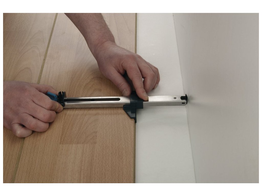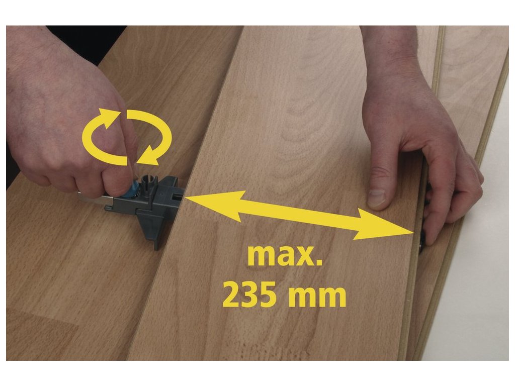 pro přesné měření poslední řady laminátů, integrované posuvné kolečko pro přesné poklepání obrysu stěny až na šířku desky 235 mm, extra široká lišta pro bezpečné uložení laminátové desky, vodicí lišta pro čisté čáry EAN : 4006885695207Dodatočné parametre