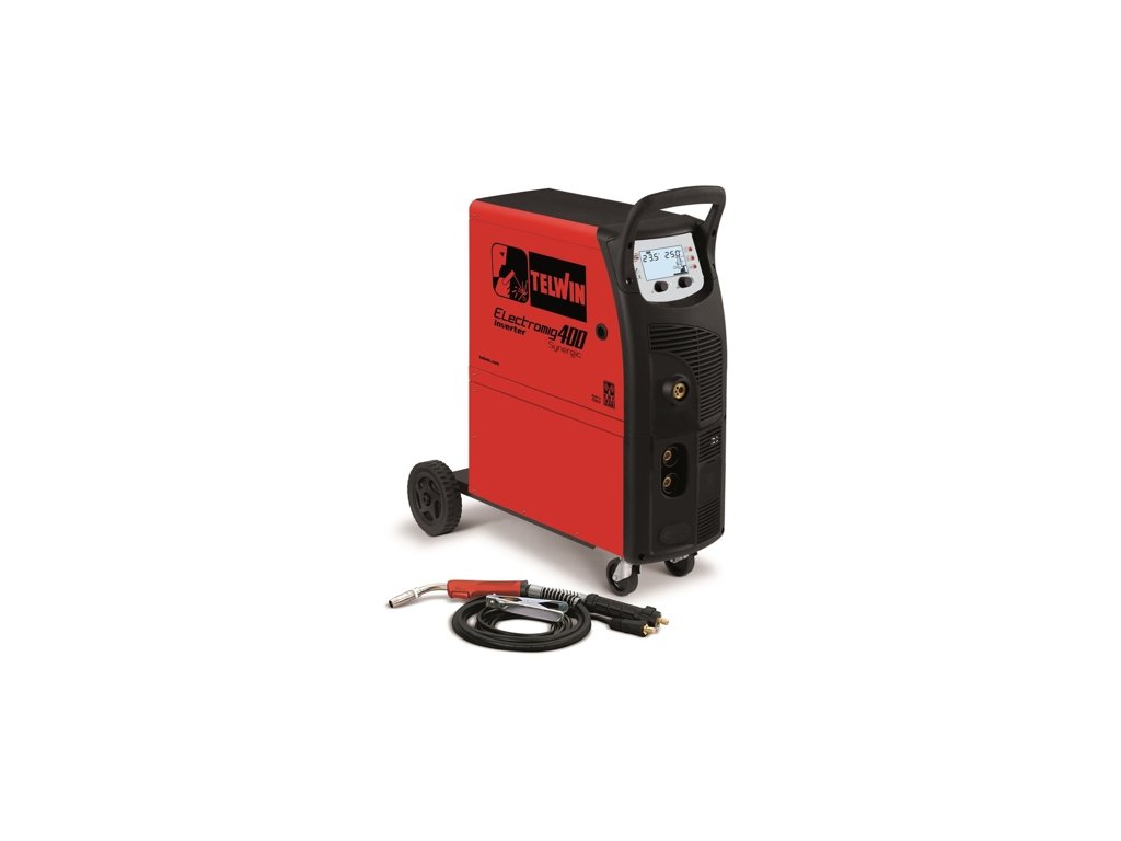 Zváračka CO2 - Zvárací invertor CO2 ELECTROMIG 400 Synergic Telwin. Mikroprocesorovo riadený, multiprocesný zvárací stroj MIG-MAG / FLUX / BRAZING / MMA a TIG DC-Lift. Flexibilita použitia a zváranie rôznych materiálov (oceľ, nehrdzavejúca oceľ, hliník) alebo spájkovanie (pozinkované plechy).